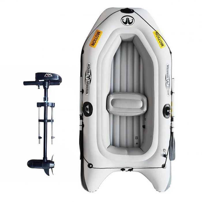 Dankzij de bijgeleverde T-18 elektromotor hoeft u niet uw peddels te gebruiken om te varen. Dit maakt de Aqua Marina Motion een zeer gebruiksvriendelijke opblaasboot. De elektromotor weegt slechts 2kg, dit maakt het erg makkelijk om de elektromotor mee te nemen naar uw favoriete vaarplek. De Aqua Marina T-18 elektromotor heeft een werkspanning van 12V en heeft een vermogen van 180 watt. Met één versnelling vooruit en één versnelling achteruit is de elektromotor makkelijk te besturen. Dankzij de T-18 elektromotor hoeft u niet uw peddels te gebruiken en kunt u volledig tot rust komen in de Motion opblaasboot.