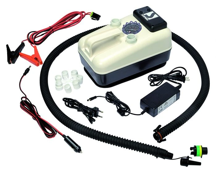 De Bravo 20-2 Elektrische Luchtpomp is een automatische, elektrische luchtpomp voor het snel opblazen van rubberboten, kajaks en SUP boards. De pomp slaat automatisch af, zodra de gewenste druk is bereikt. Deze kunt u vooraf instellen. Op de ingebouwde manometer kunt u de druk aflezen. Daarnaast is de Bravo 20-2 Elektrische Luchtpomp voorzien van een accu, zodat u deze kunt gebruiken waar u maar wilt. De LED indicator geeft de status weer van de druk. De Bravo 20-2 Elektrische Luchtpomp pompt met behulp van 2 cilinders en maakt daardoor weinig geluid.