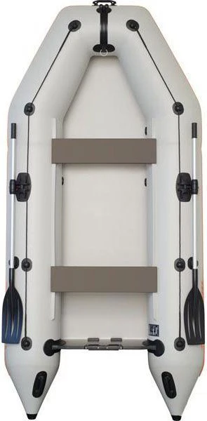 Deze KM-330 is uitgerust met een Airdeck opblaasbodem. Hierdoor is de boot circa 10kg lichter dan bij een lattenbodem en is hij snel vaarklaar gemaakt. Dit zorgt er ook meteen voor dat dit door één persoon gedaan kan worden. Het pakket van 31kg en 375L valt namelijk zelfstandig te vervoeren. Handig, mocht de rest van de inzittenden het nog even laten afweten.