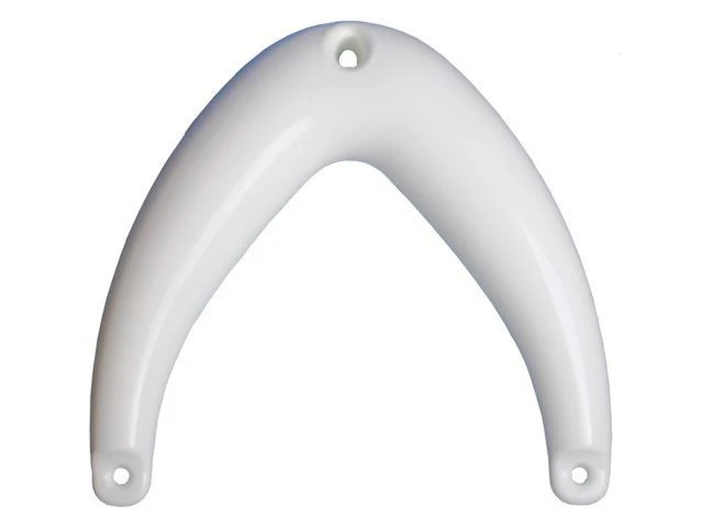 Door de hoefijzervorm sluit de stootwil goed aan op de voorsteven van uw boot. U hangt hem gemakkelijk op door een lijn door de 3 ogen te halen en deze aan de boot vast te zetten. Eenmaal bevestigd kunt u de grote boegfender gewoon op zijn plaats laten zitten.