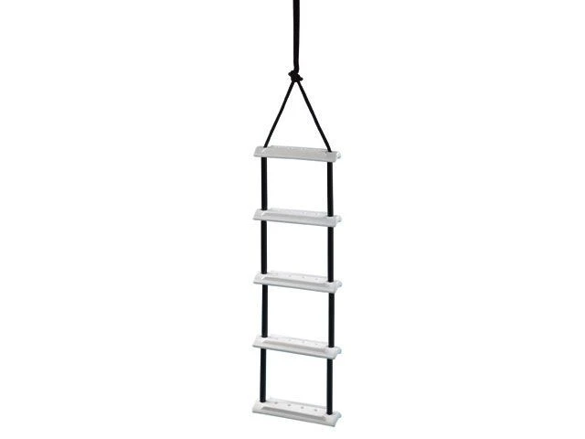 Touwladder, gemaakt van niet rottend nylon en met kunststof anti-slip treden.